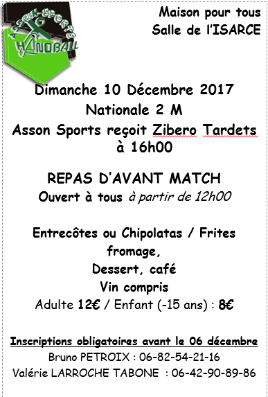 Venez nombreux passer un moment convivial autour d'un repas le dimanche 10 décembre à partir de 12 heures à la salle de l' Isarce. Inscriptions avant le 06 décembre 2017.